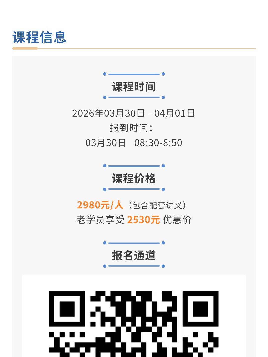 1、老学员享受培训费85折优惠,若提交订单后价格没有变化,请加微信18722041615或致电022-27220105,老师后台确认价格后再支付。