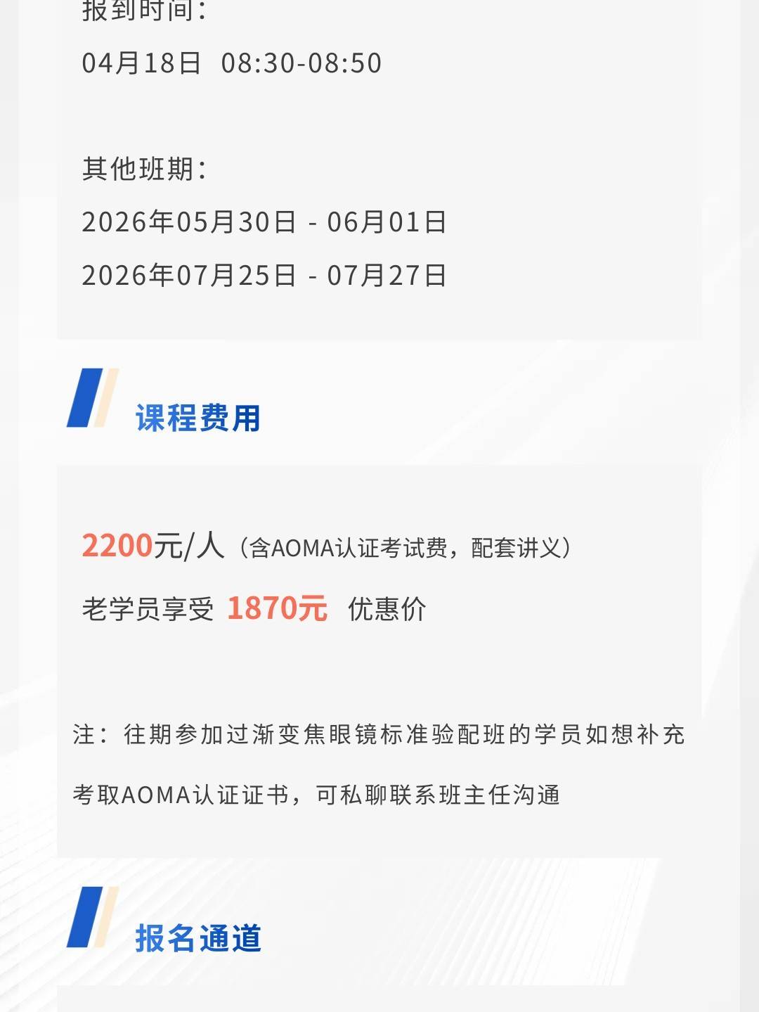 开班日期: 2026.04.18 ~ 04.20 2026.05.30 ~ 06.01 2026.07.25 ~ 07.27