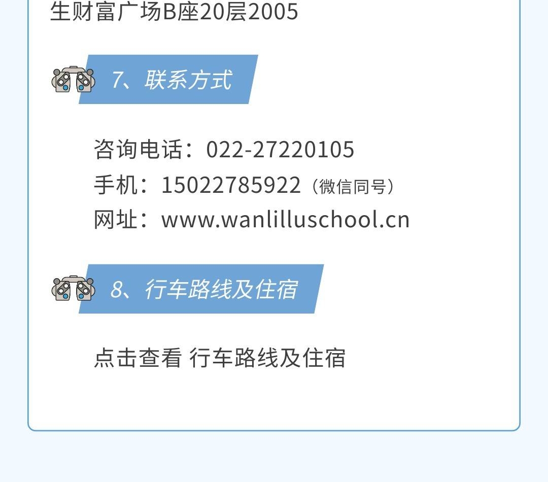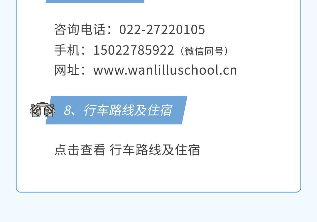 咨询热线:022-27220105 网址:www.wanliluschool.cn